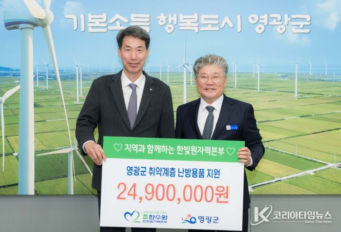 코리아타임뉴스 노승선 기자 | 영광군은 한국수력원자력 ㈜한빛원자력본부(본부장 김성면)로부터 겨울철 취약계층 난방용품 지원을 위한 온열매트 166개(24,900천 원 상당)를 기탁받았다고 밝혔다.