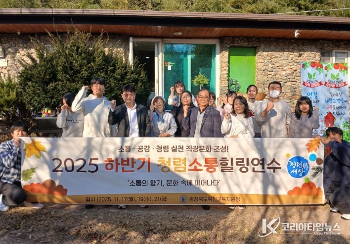 코리아타임뉴스 사회팀 | 옥천교육지원청은 11월 17일 ~ 11월 21일 중 3일간 충북 옥천군 청성면에 위치한 앙짱감농원 체험학습장에서 전직원을 대상으로 청렴소통힐링연수를 실시했다. 이번 연수는 업무 공백을 최소화하고 전직원의 참여를 유도하기 위해 3일에 걸쳐 진행됐으며, 직원 간 소통과 공감을 통해 상호 존중하고 협업하는 직장 문화 조성을 위해 마련됐다.