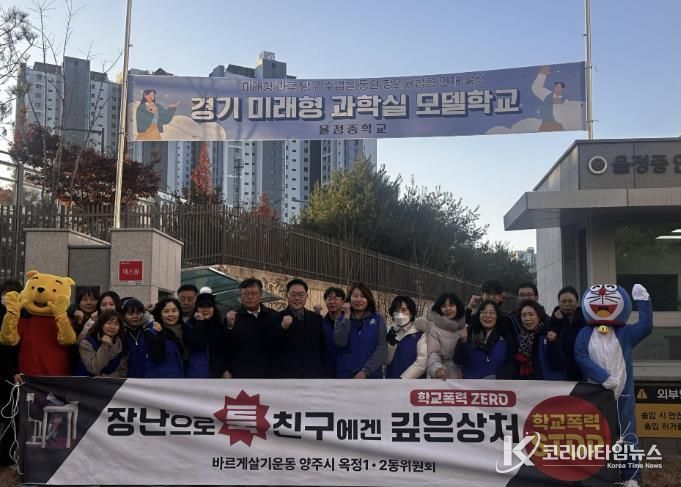 코리아타임뉴스 윤광희 기자 | 바르게살기운동 양주시협의회와 바르게살기운동 옥정1·2동 위원회는 지난 18일 율정중학교에서 학생들의 안전한 학교생활 조성을 위한 학교폭력예방 캠페인을 진행했다.