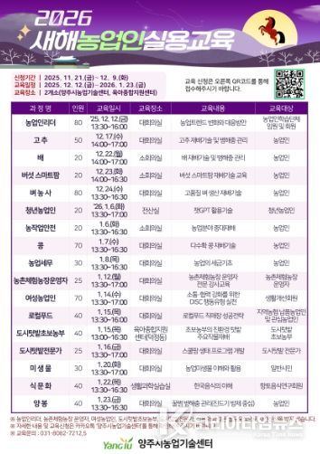 코리아타임뉴스 윤광희 기자 | 양주시가 변화하는 농업환경에 대응하고 농업인의 현장 문제 대응 능력을 높이기 위해 ‘2026년 새해농업인실용교육’ 교육생을 모집한다.