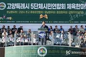 코리아타임뉴스 문화팀 | 이동환 고양특례시장이 1일 고양종합운동장에서 열린 ‘고양특례시 5단체시민연합회 체육한마당’ 개회식에 참석해 축사했다. 이동환 시장은 "이번 대회가 시민 모두가 함께 땀 흘리고 응원하며 서로를 이해하는 진정한 화합의 장이 되길 바란다"라고 전했다. 이날 행사에서 참가자들은 족구, 줄다리기, 낙하산 릴레이 등의 경기를 치르며 선의의 경쟁을 펼쳤다.