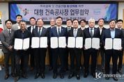 코리아타임뉴스 대전취재본부 | 대전 중구는 지난 31일 구청 중회의실에서 지역경제 활성화와 건설산업의 경쟁력 강화를 위해 대형건축사업장과‘지역건설산업 활성화 업무협약(MOU)’을 체결했다고 밝혔다. 이번 협약에는 ▲용두동 722번지 일원 공동주택(427세대) ▲유천1구역 지역주택조합 주거복합(930세대) 등 2개 건축사업장이 포함됐다. 협약식에는 ▲진흥기업㈜ ▲㈜태영건설 ▲대한전문건설협회 대전광역시회 ▲(사)대전건설건축자재협회 ▲대한기계설비건설협회 대전ㆍ세종ㆍ충남도회 등 관련 업체 및 협회가 참석해 지역 건설산업 상생 발전을 위한 뜻을 함께했다. 구는 이번 협약을 통해 전체 하도급 공사금액의 70% 이상을 대전 지역 업체(시공, 건설자재, 인력, 장비 등)에 발주하기로 협의하고, 지역 업체가 보유한 건설 신기술과 특허 사용을 적극 장려하는 한편, 사업 추진 과정에서 발생하는 각종 현안에 대해서도 행정적 지원을 아끼지 않을 계획이라고 밝혔다. 김제선 중구청장은“이번 협약이 지역 건설산업의 지속가능한 성장 기반을 마련하고, 구 건설경기에 활력을 불어넣는 계기가 되길 바란다”라며, “앞으로도 지역 기업이