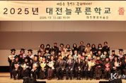 코리아타임뉴스 사회팀 | 대전평생학습관은 12월 22일 오전 10시 어울림홀에서 ‘대전늘푸른학교 중학교 학력인정 과정 졸업식’을 개최했다. 행사는 졸업생들의 3년간의 발자취를 담은 축하 영상을 시작으로 우창영 대전평생학습관장의 수료증 및 상장 수여, 설동호 대전광역시교육감의 학력인정서 수여 및 축사, 졸업생 대표 소감문 발표, 기념촬영 순으로 진행됐다. 이날 졸업식에서는 2023년 3월에 입학해 3년의 교육과정을 수료한 졸업생 24명이 학력인정서를 받았으며, 평균 연령 71세(최고령 83세)의 졸업생들은 늦은 나이에도 불구하고 교육과정을 성실히 이어온 끝에 중학교 졸업이라는 값진 결실을 맺었다. 또한 1・2단계 교육과정을 수료한 학습자 79명에게는 수료증이 수여됐다. 대전늘푸른학교는 2015년부터 중학 학력 인정 문해교육과정을 운영해 오고 있으며, 올해까지 총 374명의 졸업생을 배출했다. 설동호 교육감은“배움의 꿈을 포기하지 않고 끊임없이 도전해 값진 성취를 이루신 졸업생 여러분께 진심으로 축하의 말씀을 전한다”며 “오늘의 졸업이 인생의 마침표가 아닌, 더 넓은 세상으로 나아가는 새로운 출발선이