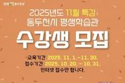 코리아타임뉴스 경기취재본부 | 동두천시 미래교육진흥원 평생학습관은 시민의 자기계발과 여가활동을 지원하기 위해 ‘11월 특강 수강생’을 모집한다고 21일 밝혔다. 이번 특강은 계절감과 시민 수요를 반영한 다양한 주제로 구성됐으며, 남녀노소 누구나 참여할 수 있는 생활 밀착형 프로그램으로 운영된다. 수강 신청은 10월 31일까지 동두천시 미래교육진흥원 홈페이지에서 온라인으로 접수할 수 있다. 11월 특강은 ▲미리 만나는 크리스마스 다이닝 ▲윈터 대비 손뜨개 클래스 ▲새해 마음을 담은 보자기 클래스 ▲이탈리아 르네상스 미술가들 ▲100세 시대 자산관리 등 총 5개 강좌가 개강할 예정이다. 박형덕 시장은 “시민들이 일상 속에서 배움의 즐거움을 느끼고 서로 소통할 수 있도록 실생활에 도움이 되는 프로그램을 마련했다”라며 “앞으로도 지역민이 주체가 되는 평생학습 문화를 확산하기 위해 노력하겠다”라고 말했다.