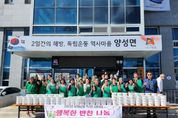 코리아타임뉴스 경기취재본부 | 양성면 새마을지도자협의회와 부녀회는 지난 15일 지역 내 독거어르신과 먹거리 취약계층 70가구를 대상으로 ‘행복한 반찬 나눔’ 행사를 열어 따뜻한 온정을 나눴다. 이번 행사는 지역농산물을 활용한 먹거리 지원사업의 일환으로 진행됐으며, 새마을지도자와 부녀회원 40여 명이 참여해 소불고기, 호박죽, 얼갈이 겉절이 등 정성스럽게 준비한 반찬을 손수 만들었다. 이들은 각 가정을 직접 방문해 음식을 전달하며 이웃들에게 따뜻한 위로와 정을 전했다. 정인채 협의회장은 “우리 주변의 이웃들에게 작은 적성이지만 따뜻한 반찬으로 마음을 전할 수 있어 매우 뜻깊다”며 “앞으로도 지역사회를 위한 나눔 활동을 꾸준히 이어가겠다”고 전했다. 최경미 부녀회장은 “회원들이 한마음으로 정성껏 만든 반찬이 소외된 이웃들에게 힘이 됐으면 좋겠다”며 “앞으로도 주민 모두가 함께 행복을 나누는 따뜻한 양성면을 만들어가겠다”고 말했다.