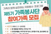 코리아타임뉴스 경남취재본부 | 고성군가족센터(센터장 황순옥)는 2월 1일부터 가족이 함께 실천하는 자원봉사 프로그램인 ‘제5기 가족봉사단’ 단원을 수시로 모집한다고 밝혔다. ‘제 5기 가족봉사단’은 가족 구성원이 함께 봉사활동에 참여함으로써 건강한 가족문화를 형성하고, 지역사회 나눔 활동을 통해 이웃과 마음을 이어가기 위해 기획됐다. 가족봉사단은 환경정화활동, 취약계층가정 방문 봉사활동, 고성군가족센터 프로그램 운영 지원 등 다양한 분야의 봉사활동을 매달 정기적으로 진행할 예정이다. 모집은 2026년 2월 1일부터 수시로 이루어지며, 참여 대상은 2인 이상으로 구성된 가족이면 누구나 신청 가능하다. 3월 7일 발대식을 시작으로 본격적인 활동에 들어갈 계획이며 발대식에서는 가족봉사단의 운영 취지와 연간 활동 계획을 공유하고, 참여 가족 간 소통의 시간을 마련할 예정이다. 참여를 희망하는 가족은 고성군가족센터로 방문 또는 전화 접수하면 된다. 황순옥 센터장은 “가족봉사단은 봉사를 매개로 가족이 함께 성장하고, 지역사회와 따뜻하게 연결되는 의미 있는 활동”이라며, “가족이 함께하는 나눔 활동에 관심 있는