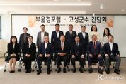 코리아타임뉴스 경남취재본부 | 고성군은 10월 28일, 고성군유스호스텔 2층 회의실에서 ‘부울경포럼-고성군수 간담회’를 개최하고, 부울경(부산·울산·경남) 권역의 상생발전과 협력방안을 논의했다. 이날 간담회에는 이상근 군수를 비롯해 박병대 부울경포럼 회장 및 임원단, 고성군 간부 공무원 등 12명이 참석했으며, 고성군의 주요 현안과 부울경 권역의 공동과제에 대한 심도 있는 논의가 이뤄졌다. 간담회를 통해 남부권 광역관광개발사업, 자란도 해양치유센터 조성, KTX 고성역세권 투자선도지구, 스포츠산업도시 고성 등 고성군의 역점사업을 공유했다. 부울경권 상생발전과 행정협력의 방향에 대해서도 의견을 교환했으며, 특히 최근 논란이 되고 있는 SK오션플랜트 매각과 관련하여 지역차원에서의 대응방안을 주제로 활발한 토론이 이어졌다. 박병대 부울경포럼 회장은 “지방소멸 대응과 수도권 집중 완화를 위해 부울경권이 하나의 생활·경제권으로서 협력체계를 강화해야 한다”라고 강조하며, 부울경포럼에서도 지자체 간 공동사업 추진의 필요성을 제시했다. 이에 대해 이상근 군수는 “고성군은 경남의 중심에서 부울경권과의