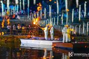 코리아타임뉴스 경남취재본부 | 국가유산청과 경상남도, 김해시가 주최하고, (재)김해문화관광재단이 주관한'2025년 김해 국가유산 야행 – 金海, 빛을 담고 그리다'가 지난 17일부터 19일까지 3일간 김해 수로왕릉 및 수릉원 일대에서 성황리에 막을 내렸다. 김해 국가유산야행은 수로왕릉 일대 국가유산의 아름다움을 빛으로 물드는 김해의 역사를 담은 야경과 예술로 재해석한 행사로, 올해 야행은 개막식과 더불어 드론라이트쇼, 어린이 가야접시 유물발굴체험, 토더기 바람떡 만들기, 파사석탑 연필꽂이 만들기 등 다채로운 체험프로그램들이 강화되어 더욱 주목을 받았다. 개막식 행사인 가락국의 시조대왕인 수로왕과 허왕후를 기리는 경상남도 무형유산 숭선전 제례복 퍼포먼스는 전문모델이 아닌 실제 제례를 봉행하시는 종친회 분들이 직접 무대를 선보여 시민과 관람객들에게 진심과 전통을 담은 이색적인 무대였으며, 어린이와 함께하는 개막선언은 미래세대가 김해의 유산을 이어간다는 상징적 의미로 큰 감동을 주었다. 또한, 관내 대표기업인 ㈜빙그레도 이번 야행에 함께하여 기업 조형물 포토존 전시 등 김해시민과 함께하는 공간을 마련했으