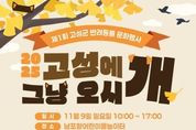 코리아타임뉴스 경남취재본부 | 고성군은 오는 11월 9일 일요일 오전 10시, 남포항 일원(어린이 물놀이터 입구)에서 제1회 반려동물 문화행사 ‘고성에 그냥 오시개’를 개최한다고 밝혔다. 군은 올해 9월 26일 동물가족센터를 새롭게 개관하며 반려동물 복지와 문화 활성화를 위해 노력하고 있다. 이번 행사는 반려동물과 보호자가 함께 즐기고 교감할 수 있는 다양한 체험 프로그램으로 구성되어 있다. 특히 반려동물 행동교정 전문가 이웅종 교수의 ‘바른산책’ 특별강연 및 Q&A가 열려 반려동물 보호자들의 큰 관심이 기대된다. 이 밖에도 △반려동물 장기자랑 △기다려대회 △청결미용 체험 △‘견생네컷’ 포토존 △펫타로 △반려동물 캐리커쳐 △터그 만들기 △어질리티(Agility) 체험 등 반려인과 비반려인 모두가 즐길 수 있는 다채로운 프로그램이 준비돼 있다. 또한, 이번 행사에서는 고성군 동물가족센터에서 현재 보호 중인 유기견들을 직접 만나볼 수 있는 입양 행사가 함께 열린다. 새로운 가족을 기다리고 있는 사랑스러운 유기견들이 현장에 나와 방문객들과 교감하며, 따뜻한 마음으로 평생 함께할 반려동물을 찾을 수 있는 소중한 기회가