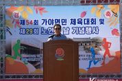 코리아타임뉴스 경남취재본부 | 합천군 가야면은 26일 해인중학교 운동장에서 제54회 가야면민체육대회 및 제29회 노인의 날 기념행사를 개최했다. 가야면 체육회(회장 임재후)가 주최하고 대한노인회 가야면분회(회장 김상원)가 주관한 이번 행사는 기념식과 체육행사, 문화공연 순으로 진행됐으며, 김윤철 합천군수와 신성범 국회의원, 장진영 경상남도의회의원, 신명기, 조삼술 합천군의회의원 등을 비롯한 지역 어르신 800여명이 참석했다. 이날 기념식에서는 그간 우리 지역의 노인복지 증진과 지역발전을 위해 헌신해 온 한판명 사촌1구 경로당 회장 외 10명에 대한 표창 및 감사패와 지역의 체육발전에 공헌한 학생에 대한 장학금이 수여됐다. 임재후 가야면 체육회장은“본 행사를 위해 바쁘신 중에도 참석하여 자리를 빛내주신귀빈 여러분들께 감사드리며, 이 행사를 준비해주신 여러 관계자분들에게도 감사드린다. 본 행사를 통해 가야면의 건강과 화합을 다지고, 어르신들도 건강하고 의미있는 시간이 되시기를 바란다”며 축사를 전했다.