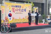 코리아타임뉴스 경북취재본부 | 예천군은 25일 호명읍 예천군복합커뮤니티센터 주차장에서 사회복지시설·단체, 사회보장 유관기관과 군민 등 500여 명이 참여한 가운데 제5회 예천군 복지박람회를 성황리 개최했다. 이번 복지박람회는 ‘세대 MIX 행복 FLEX!’라는 주제로 예천군지역사회보장협의체와 예천군사회복지사협회가 주최·주관해 사회복지 관계자들과 주민들이 화합할 수 있는 복지 어울림의 장으로 마련됐다. 이날 행사는 국가대표 태권도장의 태권도 시범 식전공연을 시작으로, 지역사회 복지 발전에 기여한 사회복지 종사자와 기관이 국회의원, 예천군수, 예천군의장, 지역사회보장협의체, 사회복지사협회로부터 표창을 받았다. 행사장에서는 관내 30여 개 사회복지시설·단체, 사회보장 유관기관이 부스를 운영하며 생활 밀접 복지서비스 정보를 제공하고, 시설‧기관‧단체 회원과 종사자가 직접 만든 물품의 전시‧판매 및 체험 부스, 먹거리 등이 마련돼 행사를 풍성하게 했다. 황은정 사회복지사협회장은 “다양한 복지 프로그램을 통해 지역주민들의 삶의 질을 높일 수 있도록 사회복지 최일선에서 최선을 다하겠다”고 전했다.