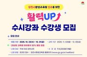코리아타임뉴스 경북취재본부 | 김천시평생교육원은 시민들의 일상에 배움의 활력을 불어넣을‘활력 UP 수시 강좌’를 개설하여, 오는 10월 22일부터 10월 31일까지 수강생 모집에 나선다. 이번 프로그램은 평생교육원을 처음 이용하는 시민들을 위한 ‘신규 맞춤형 강좌’로 기획됐으며, 배움을 희망하는 19세 이상 김천 시민이라면 누구나 참여할 수 있다. 또한, 2025년도 평생교육원 미이용자 30%를 별도 모집해 새로운 학습자들이 보다 쉽게 참여할 수 있도록 배려했다. 교육은 11월 3일부터 12월 5일까지 약 한 달간 운영되며, 일상 속 실용성과 즐거움을 모두 담은 5개 강좌(△일상 회화 중심의 여행 중국어, △식물 그림을 그리며 힐링하는 보테니컬 아트, △왕초보 컴퓨터 첫걸음, △건강한 체력을 기르는 근력 필라테스 · 타바타, △균형 잡힌 몸을 위한 바디 케어 건강 체조)로 구성됐다. 수강료는 월 8,000원이며, 일부 강좌에서는 재료비가 별도 발생한다. 신청은 김천시평생교육원 누리집에서 온라인으로 가능하며, 자세한 문의는 김천시평생교육원으로 하면 된다.