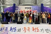 코리아타임뉴스 경북취재본부 | 청도군이 주최하고 (사)한국예총 청도지회(회장 손만식)가 주관한 청도예술제 특별기획행사‘한중 문화예술 교류전’이 10월 17일부터 19일까지 3일간 청도반시축제장 실내테니스장에서 성황리에 열렸다. 이번 행사는 한국 청도군과 중국 칭다오 예술인들이 함께한 문화예술 교류의 장으로, 시각예술 전시와 공연, 양국 특산물 홍보 등 다채로운 프로그램이 진행됐다. 전시 부문에서는 (사)한국미술협회·사진작가협회·민화협회 청도지부 회원들과 중국 봉황미술관 작가들의 회화, 서예, 사진 등 100여 점의 작품이 선보여 관람객들의 발길을 사로잡았다. 공연 부문에서는 양국 예술인들이 음악, 국악, 무용, 연극 등 다양한 무대를 펼쳤으며, 특히 칭다오 공연예술단의 전통 공연과 한국 예술인들의 무대가 뜨거운 호응을 얻었다. 행사장에는 청도 감말랭이와 칭다오 맥주를 시음·시식할 수 있는 부스도 운영돼, 예술뿐 아니라 양국의 특산품을 함께 즐길 수 있는 체험의 장으로 큰 인기를 끌었다. 또한 중국 봉황미술관 조길간(趙吉干) 대표를 비롯한 예술인 13명이 청도를 방문해 김하수 군수와 환담