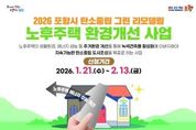 코리아타임뉴스 경북취재본부 | 포항시는 노후주택의 주거환경 개선과 에너지 비용 절감을 위해 2026년도 그린리모델링 지원사업을 시행한다. 이 사업은 생활환경과 에너지 성능이 저하된 노후주택을 대상으로 단열, 창호, 냉난방 효율 개선 등을 지원해 시민의 삶의 질을 높이고 녹색건축물 확산을 도모하기 위해 마련됐다. 지원 대상은 ‘건축법’에 따른 사용승인 후 15년 이상 경과된 주거용 건축물로 단독주택과 다가구주택, 아파트·연립·다세대주택 등 19세대 이하 공동주택과 단독·공동주택 및 근린생활시설이 복합된 연면적 660㎡ 이하 건축물이다. 신청 자격은 해당 건축물의 등기상 소유자다. 지원 내용은 건축물의 에너지 사용량 절감과 성능 개선을 위한 내·외부 단열공사, 고성능 기밀 창호 교체, 냉난방 효율 개선 공사, 신·재생에너지 설비 설치 등으로, 총공사비의 50% 이내에서 최대 500만 원까지 지원된다. 신청은 이달 21일부터 2월 13일까지 포항시청 건축디자인과를 방문하거나 등기우편으로 접수하면 되며 자세한 사항은 포항시청 홈페이지 또는 해당 부서 및 읍면동 행정복지센터로 확인할 수 있다