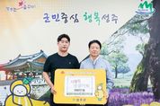 코리아타임뉴스 경북취재본부 | 농업회사법인 천우(대표 이기훈)은 9월 29일 성주군청을 방문해 취약계층을 위한 성금 5백만 원을 경북사회복지공동모금회에 전달했다. 농업회사법인 천우는 성주읍에서 2023년 11월부터 법인을 설립하여 참외유통업을 시작했으며, 이기훈대표는 고향인 성주군에서 사업을 하면서 기부를 하고 싶었는데 이번 기회에 성금을 기탁하게 됐다고 한다. 이기훈 대표는 “도움이 필요한 지역의 이웃들에게 조금이나마 힘이 되고자 나눔에 참여하게 됐다”며 “앞으로도 지역사회의 어려운 이웃을 위해 더 많은 관심과 사랑을 실천할 수 있도록 노력하겠다”고 전했다. 한편, 기부와 후원에 대한 문의는 성주군청 주민복지과로 하면 된다.