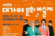코리아타임뉴스 경북취재본부 | 고령군과 고령문화원은 오는 9월 27일 토요일 대가야문화누리 일원에서‘제52회 대가야문화예술제’를 개최한다. 대가야문화예술제는 고령군을 대표하는 문화·예술 축제로, 매년 군민과 관광객이 함께 어우러지며 다채로운 행사로 대가야의 역사와 문화를 현재에 되살리는 장이 되어 왔다. '주요 프로그램' ▶ 축하공연(19:00 ~ 21:00) : 육중완 밴드, 더헤븐앙상블, 이은경(소프라노) 유광준(바리톤), 경상북도립국악단 사물놀이팀, 대가야청소년오케스트라 ▶ 즐길거리(13:00 ~ 21:00) : 문화단체 부스, 문화상점 모두 마켓, 먹을거리&볼거리 ▶ 연계 행사(09:30 ~ 21:00) : 제2회 대가야풍물대축제, 제36회 경북합창제, 제9회 대가야 민속장기대회, ‘고령 서예전’전시회 특히 올해는 지산동 고분군 일원에서 진행 중인 ‘대가야 미디어아트 빛 체험’과 연계해, 대가야문화예술제를 찾는 방문객들에게 전통문화와 첨단기술이 결합된 새로운 문화관광 콘텐츠도 체험할 기회를 제공할 예정이다.