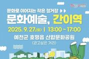 코리아타임뉴스 경북취재본부 | (재)예천문화관광재단은 27일, 예천군 호명읍 산합문화공원(걷고싶은 거리)에서 ‘문화예술, 간이역’ 9월 프로그램을 운영한다. 이번 9월 프로그램은 기존의 실내 중심 운영에서 벗어나 야외 무대로 공간을 옮기고 프로그램 구성도 한층 다채롭게 확대해 선보인다. 주요 프로그램으로는 ▲싱어송라이터 현서와 할순이 꾸미는 청춘콘서트, ▲가족 단위 관객을 위한 마술과 버블쇼, ▲환경문제 인식을 높이는 체험형 콘텐츠 ‘리사이클 정류장’, ▲감성을 자극하는 독서 프로그램 ‘북적북적 북크닉’이 준비된다. 또한 전통과 이색 의상을 직접 입어볼 수 있는 ‘내 맘대로 옷장’, 추억을 남길 수 있는 ‘인생네컷 사진관’, 사연을 나누는 ‘마법의 우체통’ 등도 마련돼 다양한 즐길 거리를 선사한다. 특히 이번에는 반려동물과 함께 참여할 수 있는 교감형 프로그램이 새롭게 추가돼, 반려인과 가족 모두가 일상 속에서 위로와 활력을 얻을 수 있는 시간을 마련할 예정이다. 김학동 이사장은 “문화예술, 간이역이 군민 누구에게나 열려 있는 쉼터 같은 프로그램이 되길 바란다”며, “앞으로도 다양한 세