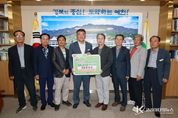 코리아타임뉴스 경북취재본부 | 포항시가 23일 광양상공회의소 회원사 20개사 임직원들이 시청 대외협력실에서 고향사랑기부금 5,600만 원을 포항시에 기탁했다고 밝혔다. 이번 기부는 지난해부터 이어져 온 포항상의-광양상의 상호 기부 활동의 일환으로 자매도시인 두 도시가 지역 상생 발전과 협력 관계를 더욱 공고히 하는 계기가 됐다. 기탁식에는 우광일 광양상공회의소 회장을 비롯해 참여 회원사 대표인 황재우 ㈜광양기업 대표이사, 나주영 포항상공회의소 회장 등이 함께했다. 특히 ㈜광양기업은 이번에만 4,500만 원을 기부해 의미를 더했다. 우광일 회장은 “고향사랑기부제는 지역 경제를 살리고 주민 복리를 증진할 수 있는 뜻깊은 제도”라며 “광양과 포항이 서로를 응원하며 상생 발전할 수 있도록 회원사들과 함께 적극 동참하겠다”고 말했다. 이강덕 포항시장은 “광양 기업인들의 따뜻한 마음이 포항 시민들에게 큰 힘이 된다”며 “이번 기부가 지방재정 확충과 지역경제 활성화에 기여하고, 두 도시의 상생 협력 모범사례가 될 것”이라고 감사의 뜻을 전했다. 한편 포항상공회의소와 광양상공회의소는 지난해 각각 5백