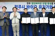 코리아타임뉴스 김태훈 기자 | 첨단바이오 분야 기술력을 보유한 국내 기업들이 전주에 둥지를 틀면서 바이오산업을 새로운 성장동력으로 육성해 온 전주시의 계획에 힘이 실리게 됐다. 전주시는 2일 전주시청 3층 소회의실에서 파마로보틱스와 뉴아인, 하이퍼틱스 등 첨단바이오 분야 기술력을 보유한 3개 기업과 공동 성장을 위한 업무협약을 체결했다. 이날 협약식에는 우범기 전주시장과 세 기업의 대표 등 관계자 8명이 참석했으며, 이들은 기업 애로 해소와 산업 생태계 확장을 위한 상생 협력에 나서기로 뜻을 모았다. 이 자리에서 시는 현재 추진 중인 연구개발 인프라 조성 계획과 바이오산업 육성 방향을 설명하고, 기업들로부터 이전 계획과 기술개발 현황, 필요한 지원 사항 등을 청취했다. 특히 이번에 협약을 맺은 기업들은 모두 첨단 의료기기와 전자약 분야에서 경쟁력을 인정받은 기술 기반 기업들로 지역 바이오산업 성장을 위한 동력이 될 것으로 기대를 모은다. 구체적으로 파마로보틱스는 AI 기반 주사제 자동조제 로봇을 개발하며 TIPS와 초격차 1000+ 등에 선정된 성장기업으로, 지난 10월 본사를 전주로