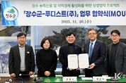 코리아타임뉴스 김태훈 기자 | 장수군은 26일 군청 회의실에서 B2B 식자재 전문 기업인 푸디스트 주식회사(사조그룹 계열)와 지역 경제 활성화와 농가 상생 발전을 위한 전략적 업무협약을 체결했다고 밝혔다. 이날 협약식에는 최훈식 장수군수를 비롯해 푸디스트 주요 실무·책임자가 참석해 군 농특산물·레드푸드 판로 확대와 지역 일자리, 축제 홍보, 사회공헌으로 이어지는 다양한 협력 의지를 공유했다. 장수군 대표 축제인 ‘장수한우랑사과랑축제’로 전국적으로 유명해진 장수 농특산물과 레드푸드에 대한 소비자들에 관심이 매우 높아졌다. 이에 푸디스트는 장수 농가와의 직거래를 확대해 농특산물 수급 불안정을 완화하고 합리적인 가격체계를 마련함으로써 지역 농업의 지속 가능성을 높이고자 협약을 추진하게 됐다. 이번 협약으로 장수군과 푸디스트는 한우, 사과, 토마토, 오미자 등 군의 대표 농특산물과 레드푸드에 대해 제품 기획, 상품 개발, 유통 등 전반에 걸친 전략적 협력 체계를 구축해 안정적인 판로를 개척한다. 더불어 장수 지역 농가와 직접 계약을 체결해 선제적으로 물량을 확보하고 기업과 농민이 함께 성장할