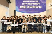 코리아타임뉴스 김태훈 기자 | 전주시 행정과 주민 공동체의 가교역할을 담당하는 9개 중간지원조직이 협업과 연계를 통해 맞춤형 서비스를 제공하기로 뜻을 모았다. 전주시는 26일 전주지역소통협력센터에서 전주시 9개 중간지원조직의 센터장 등 50여 명이 참석한 가운데 지역공동체의 경제적 자립과 효율적 지원체계 마련을 위한 ‘전주시 중간지원조직 기능 연계 및 공동 거버넌스 구축을 위한 업무협약’을 체결했다. 이번 협약은 그동안 개별적으로 운영되던 공동체와 교육, 주거, 도시재생, 일자리 등 9개 분야 중간지원조직의 칸막이를 걷어내고, 복합적 수요를 가진 공동체와 시민들에게 맞춤형 원스톱 서비스를 제공하기 위해 추진됐다. 협약에 참여한 9개 조직은 △전주지역소통협력센터 △전주교육통합지원센터 △전주시가족센터 △전주시노인취업지원센터 △전주시도시재생지원센터 △전주시새활용센터 다시봄 △전주시에너지센터 △전주시주거복지센터 △전주청소년센터 등 9개 지원기관이다. 참여기관들은 이날 협약을 통해 ‘한 아이를 키우려면 온 마을이 필요하다’는 취지 아래, 9개 기관이 보유한 인적·물적 자원을 결합해 지역 역량을 키워내는 ‘공