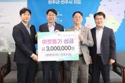 코리아타임뉴스 김태훈 기자 | OB맥주(주) 전주지점이 26일 전주시를 찾아 취약계층의 따뜻한 겨울나기를 위한 성금 300만 원을 쾌척하며 본격적인 추위가 시작되는 연말을 맞아 지역사회에 훈훈한 감동을 전했다. 이날 전달식에는 채용석 전주지점장을 비롯한 임직원이 참석해 따뜻한 나눔의 의미를 더했다. 기탁된 성금은 사회복지공동모금회를 통해 전주시 저소득 계층의 생계 지원 및 복지시설 지원 등 필요한 곳에 사용될 예정이다. 채용석 OB맥주(주) 전주지점장은 “우리가 이어온 나눔이 지역 취약계층의 생계 안정에 작지만 따뜻한 보탬이 되기를 바란다”면서 “앞으로도 우리 지역의 어려운 이웃들이 희망을 잃지 않고 살아갈 수 있도록 꾸준하고 진정성 있는 사회공헌 활동을 펼치겠다”고 말했다. 전주시 관계자는 "따뜻한 마음을 모아 나눔을 실천해 준 OB맥주(주) 전주지점 임직원들에게 진심으로 감사하다“면서 ”기탁해 준 성금은 전주시 어려운 이웃들의 삶에 소중한 힘이 될 수 있도록 의미 있게 사용하겠다"고 말했다. 전주시 완산구에 소재한 OB맥주(주) 전주지점은 21명의 직원이 근무하는 지역 기반 기업으로, 매년 취