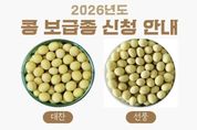 코리아타임뉴스 김택호 기자 | 당진시는 오는 4월 10까지 2026년도 콩‧팥 정부 보급종 신청을 받는다고 19일 밝혔다. 이번에 공급하는 품종은 콩 ‘대찬’과 ‘선풍’ 2개 품종과 팥 ‘아라리’ 품종이며, 공급 가격은 1포대(5kg)당 27,790원이다. 종자는 소독과 미소독 여부를 선택해 신청할 수 있다. 신청은 각 읍면동 행정복지센터 산업팀을 통해 가능하며, 신청한 종자는 4월 1일부터 5월 8일까지 신청 시 선택한 지역농협을 통해 공급될 예정이다. 콩 ‘대찬’은 내도복성(쓰러짐 견딤)이 강해 기계수확이 쉬운 황색 대립종으로, 청국장 등 가공 적성이 우수하고 수량성이 높은 것이 특징이다. 다만, 탈립(알떨림)에 약하므로 반드시 적기에 수확해야 한다. 콩 ‘선풍’은 논 재배 적응성이 우수하고 내도복성이 강해 기계화 재배 안정성이 뛰어난 중남부 지역 특화 품종이다. 안정적인 생산을 위해 적정 재식밀도를 준수하고, 검은뿌리썩음병 예방을 위한 철저한 배수 관리가 필요하다. 아울러 팥 ‘아라리’는 배정 물량이 30kg으로 소량 공급되며, 3월 9일 오전 9시부터 종자은행을 통해 전화 선착순