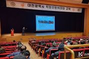 코리아타임뉴스 대전취재본부 | 대전시는 4일 오후 14시부터 18시까지 직장민방위대장의 평시 재난안전사고 및 민방위사태 발생을 대비해 시청 대강당에서 ‘2025년 직장민방위대장 교육’을 진행했다. 이번 직장민방위대장 교육에서는 5개 자치구의 국가 및 지방 행정기관, 학교, 정부투자기관, 지방공기업, 기업체 등 직장민방위대장 160여 명이 참석했고 민방위 전문 강사 3명을 초빙해 민방위 제도 및 대장의 임무, 응급처치, 화생방에 대한 교육을 받았다. 박재완 대전시 사회재난과장은 “러․우 전쟁 등 불안한 남북관계와 국제정세로 국가안보의 중요성이 어느 때보다 높아진 지금 직장민방위대를 지휘하는 민방위대장 교육은 매우 중요하다고 생각한다”라며 “이러한 교육을 토대로 직장민방위대원, 나아가 모든 민방위 대원들의 능력이 향상되기를 바란다”라고 말했다. 한편, 대전시에서는 민방위사태 발생 시 대처할 수 있는 능력 함양과 역량을 강화하기 위해 매년 직장민방위대장 교육을 실시하고 있다.