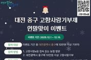 코리아타임뉴스 대전취재본부 | 대전 중구는 1일부터 오는 15일까지 연말맞이 고향사랑기부제 답례품 추가 증정 이벤트를 진행한다고 밝혔다. 이번 이벤트는 연말을 맞아 고향사랑기부제 참여를 확대하고 중구의 우수한 답례품을 널리 알리기 위해 마련됐다. 고향사랑e음 또는 농협을 통해 대전 중구에 10만 원 이상 고향사랑기부를 할 경우 자동으로 이벤트에 참여되며, 기부자에게는 10만 원까지 전액 세액공제(초과분 16.5%)와 함께, 기부금의 30% 상당에 해당하는 지역 답례품이 제공된다. 여기에 더해 기부 순번이 5의 배수에 해당하는 300명에게 답례품이 추가로 증정된다. 추가 답례품은 올해 신규로 입점한 지역 업체인 경화제면소와 사리원푸드의 1만 5천원 상당의 제품으로, 기부자들이 중구의 새로운 지역 상품을 경험할 수 있도록 구성됐다. 김제선 중구청장은 “연말을 맞아 따뜻한 나눔을 실천해주시는 분들게 감사의 마음을 담아 특별한 혜택을 준비한 만큼, 많은 분들의 관심과 참여를 부탁드린다”라고 말했다.
