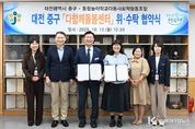 코리아타임뉴스 대전취재본부 | 대전 중구는 13일 통합놀이학교다동 사회적협동조합(대표 이미라)과 다함께돌봄센터 석교1호점 위수탁 운영협약을 체결했다고 밝혔다. 수탁기관으로 선정된 통합놀이학교다동 사회적협동조합은 향후 5년간 다함께돌봄센터의 시설 관리와 운영 전반을 맡아 석교동 일대의 맞벌이 가정과 다자녀 가구 등 양육 부담이 큰 가정을 대상으로 안전하고 다양한 돌봄서비스를 제공할 계획이다. 올해 11월 개소 예정인 다함께돌봄센터 석교1호점은 석교동복합커뮤니티센터 2층에 들어선다. 이곳은 행정복지센터, 작은도서관, 주민자치 프로그램실과 함께 운영되어 지역사회와 긴밀히 연계된 통합 돌봄 환경을 구축할 것으로 기대된다. 김제선 중구청장은 “가정의 양육 부담을 덜어주고 아동이 건강하게 성장할 수 있도록 초등돌봄 기관을 지속해서 확충할 예정이다”라며, “세심한 돌봄서비스를 제공할 수 있는 전문기관과 협력해 아이들이 행복하게 지낼 수 있는 돌봄환경을 조성하도록 최선을 다하겠다 ”라고 말했다.