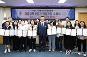 코리아타임뉴스 대전취재본부 | 대전 중구는 1일 중구청 중회의실에서 행복이음교육지구 사업으로 추진한 ‘2025년 중구 마을교육활동가 양성과정’을 마무리하고 수료식을 개최했다고 밝혔다. 해당 과정은 지난 9월 8일부터 4주간 진행됐으며, 활동가로서의 역량을 갖출 수 있도록 ▲마을 교육자원 조사 ▲마을교육 프로그램 기획 ▲선진지 탐방 ▲전문가 특강 등 총 8차시 강의로 구성하여 운영됐다. 이날 총 12명의 수료생은 마을의 다양한 지역자원을 활용한 교육 기획안을 발표하고, 앞으로 마을 교육의 주체로서 역할을 수행하기 위한 다짐을 공유했다. 강의에 참여한 교육생은 “이번 프로그램을 계기로 역량을 키워 마을과 아이들을 위해 기여할 수 있는 일이 무엇이 있는지 찾아 적극 참여하는 마을교육활동가가 되겠다”고 소감을 밝혔다. 김제선 중구청장은 “이번 교육을 계기로 지역 아동과 청소년들에게 더욱 풍성한 학습 경험을 제공할 기회가 되길 바란다”며, “주민 모두가 함께 배우고 성장하는 교육공동체를 만들어 나가기 위해 노력하겠다”라고 말했다.