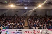 코리아타임뉴스 대전취재본부 | 대전 대덕구는 지난 27일 한남대학교 성지관에서 ‘2025 대덕구민의 날 기념행사’를 1500여 명의 구민과 함께 성황리에 개최했다고 밝혔다. 행사는 미디어 대북 퍼포먼스로 화려하게 막을 올린 1부 기념식을 시작으로 △국민의례 △구청장 환영사 △주요 내빈 축사 △제10회 대덕구민대상 시상식이 진행됐다. 특히, 지역발전과 공동체 강화에 기여한 구민에게 수여하는 제10회 대덕구민대상 에는 △지역경제부문 박희원 대덕경제재단 이사장, △지역발전부문 현승호 신탄진중소기업협회 대표, △교육문화체육부문 신익수 대전생활과학고 교장, △사회복지부문 송병월 우리두루봉사단 회장, △도시환경부문 김미자 대덕구 지역자율방재단 단장 등 5명의 수상자가 영예를 안았다. 2부 축하공연에서는 댄스팀과 인기 가수의 무대가 이어져 구민들의 뜨거운 박수와 환호 속에 행사장은 한껏 흥겨운 분위기로 물들었다. 최충규 대덕구청장은 “대덕구민의 날은 구민 모두가 하나 되는 소통과 화합의 자리”라며 “앞으로도 구민의 목소리에 귀 기울이며, 사람이 중심이 되는 따뜻한 대덕을 만들어 가겠다”고 말했다.