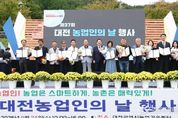 코리아타임뉴스 대전취재본부 | 대전시는 9월 24일 대전광역시농업기술센터에서 ‘제37회 대전농업인의 날’ 행사를 개최했다. 올해 행사는 “대전농업인! 농업은 스마트하게, 농촌은 매력있게!”라는 주제로 열렸으며, 농업인과 시민, 관계자 등 1,500여 명이 참석해 성황을 이뤘다. 이번 행사는 (사)한국농촌지도자대전광역시연합회, (사)한국후계농업경영인대전광역시연합회, (사)한국생활개선대전광역시연합회, 대전광역시4-H연합회가 공동 주최했다. 현장에서는 대전의 우수농산물과 스마트팜 농기자재 전시가 마련돼 농업의 현재와 미래를 한눈에 볼 수 있었으며, 명랑운동회, 한마음콘서트, 축하공연 등 다채로운 프로그램이 진행돼 남녀노소 누구나 즐길 수 있는 도농 화합의 장이 됐다. 특히 이날 행사에서는 (사)한국농촌지도자대전광역시연합회 김민순 회장이 대전 농업·농촌 발전에 아낌없는 지원을 해온 이장우 대전광역시장에게 농업인을 대표해 감사패를 전달했다. 이장우 대전시장은 “이번 행사를 통해 농업과 농촌의 소중함을 시민과 함께 나누고, 스마트농업을 통한 미래농업의 가능성을 알리는 계기가 되길 바란다”라며 “앞으로도 농업인