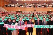 코리아타임뉴스 대전취재본부 | 대전시는 12일 시청 대강당에서 대전광역시의회, 대전충남 행정통합 민관협의체(이하 민관협)와 공동으로 “대전충남 행정통합 설명회 및 시민 한마음 촉구대회”를 개최하고, 대전충남 행정통합 특별법안의 조속한 국회 심의․의결을 촉구했다. 이날 행사는 최근 대통령이 행정통합의 필요성을 공식 언급하면서 통합 논의가 새로운 전기를 맞은 가운데 마련됐으며, 약 600명의 시민이 참석해 추진상황을 공유하고 통합 의지를 결집했다. 이창기 민관협 공동위원장은 지난 10월 2일 특별법안 발의 이후 경과를 소개하며, 통합으로 기대되는 효과를 설명했다. 이 공동위원장은 통합 시 인구 360만 규모의 초광역 혁신 클러스터 형성, 광역교통․생활권 확장 등 실질적인 변화를 강조하며 “행정통합은 수도권 일극체제에 대응할 충청권의 경쟁력 확보 전략”이라고 밝혔다. 설명회 후에는 통합을 촉구하는 퍼포먼스가 진행됐다. 이장우 대전시장, 조원휘 대전시의회의장, 이창기 민관협 공동위원장, 남재동 대전사랑시민협의회장이 관객석에서 행정통합을 촉구하는 구호를 선창하고 시민이 후창하는 카드섹션을 펼쳤으며, 이어 무