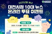 코리아타임뉴스 대전취재본부 | 대전시는 2025년 시정 성과 가운데 시민들의 공감을 얻은 뉴스를 선정하기 위해 8일부터 17일까지 ‘2025년을 빛낸 대전시정 10대 뉴스’ 투표를 진행한다. 이번 시정뉴스 투표는 올 한 해 다양한 분야에서 성과를 거둔 대전시정의 역동적인 변화를 시민들과 함께 나누고, 주요 정책에 대한 시민들의 선호도를 파악하기 위함이다. 투표 대상은‘대전 상장기업 67개, 시가총액 87조 원 달성’,‘2년 연속 방문객 2백만 명 돌파한 대전 0시 축제’, ‘’28년 개통 목표, 대전 도시철도 2호선 사업 본격화’,‘새로운 랜드마크, 갑천생태호수공원 개장’ 등 20건의 후보 뉴스다. 투표는 시민 누구나 참여할 수 있으며, 시 홈페이지, 공식 SNS(페이스북, 인스타그램 등)에 접속해 후보 중 3건을 선정하면 된다. 투표 참여자 중 500명을 추첨하여 커피 상품권을 지급하는 경품 이벤트도 진행한다. 최우경 대전시 대변인은 “올해 대전은 다양한 성과를 거뒀다”라며, “2025년 대전시정을 되돌아보며 성과를 한눈에 알 수 있는 이번 투표에 많이 참여해 주시길 바란다”라고 말했