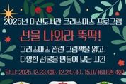 코리아타임뉴스 문화팀 | 김포시 마산도서관은 오는 12월 23일과 24일 이틀에 거쳐 크리스마스를 기념한 체험프로그램 ‘선물 나와라 뚝딱!’이 진행된다. 이번 프로그램은 ‘크리스마스’와 관련된 다양한 그림책에 대해 알아보고 직접 가족을 위한 선물과 소원 카드를 만들어보는 독서문화프로그램이다. 컬러링과 다각면 조립을 통한 크리스마스 무드등 만들기, 거미줄 모양의 매듭을 지어 드림캐쳐 만들기, 소원을 적은 카드를 만들어 도서관 내 크리스마스트리에 걸어보기 등을 통해 마산도서관 이용자에게 소소한 행복을 선사할 예정이다. 프로그램은 김포시민 80명을 대상으로 12월 23일과 24일 이틀 동안 15시, 16시 총 4회차로 마산도서관 3층 문화교실에서 진행되며, 참여 신청은 12월 10일 오전 10시부터 각 차시별 20명씩 신청이 가능하다. 김포시 마산도서관 홈페이지 문화행사 신청(모집/행사 부분)을 통한 온라인 신청으로 진행할 예정이며 자세한 사항은 마산도서관 홈페이지를 참고하거나 마산도서관으로 문의하면 된다.
