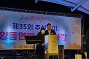 코리아타임뉴스 문화팀 | 양평군 양동면은 지난 6일, 쌍학교 야외무대에서 제35회 추석맞이 면민 노래자랑을 성황리에 개최했다고 밝혔다. 이번 행사는 비가 내리는 궂은 날씨에도 불구하고 면민들의 뜨거운 참여와 열정으로 추진됐으며, 고향을 찾은 귀성객과 주민들이 함께 어우러져 명절의 흥과 정을 나누는 화합의 장이 됐다. 특히 이날 행사에는 전진선 양평군수가 참석해 직접 인사말을 전하고 경품 추첨에도 참여하며, 주민들과 소통하는 시간을 가졌다. 전진선 양평군수는 “비 오는 날씨에도 함께해 주신 양동면 주민 여러분께 진심으로 감사드린다”며 “오늘처럼 한마음으로 웃고 즐기는 모습이 바로 행복한 양평의 힘”이라고 전했다. 노래자랑 본선에는 30명의 참가자가 무대에 올라 다양한 장르의 노래와 퍼포먼스를 선보이며 큰 호응을 얻었다. 초대가수 한가빈의 축하 무대와 각종 경품 추첨 이벤트도 더해져 현장은 열띤 분위기로 가득했다. 정창업 양동면장은 “이번 행사는 주민 한 분 한 분의 참여로 완성된 뜻깊은 자리였다”며 “앞으로도 지역의 정과 문화를 함께 나눌 수 있는 자리를 지속적으로 마련해, 모두가 즐겁고