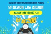 코리아타임뉴스 문화팀 | 김포시 마산도서관은 오는 11월 1일 오후 1시부터 3시까지, 장애인식개선 어린이 프로그램 책풍당당 '넌 최고야! 나도 최고야!'을 운영한다. 이번 프로그램은 제1회 한국그림책출판협회 그림책 부문 당선작인 현단 작가의 '넌 최고야!'를 활용해 어린이들이 장애를 바라보는 기존의 편견에서 벗어나 ‘장애’가 아닌 ‘사람’을 먼저 보는 시각을 기를 수 있도록 기획됐다. 현단 작가가 진행하는 이번 강의는 주인공 ‘라이언’을 통해 장애를 가진 사람도 우리 사회의 동등한 구성원임을 자연스럽게 전달한다. 또, 자신이 생각하는 ‘최고의 사람’ 모습을 직접 그려보는 독후활동을 통해 어린이들이 사람 중심의 관점을 갖고, 다양성을 존중하는 사고를 키울 수 있도록 한다. 참여 희망자는 10월 2일 오전 10시부터 마산도서관 홈페이지 또는 현장에서 신청할 수 있다. 모집 대상은 초등학생 1학년~4학년 20명이다.