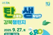 코리아타임뉴스 문화팀 | 서울 강북구는 오는 9월 27일 오전 10시부터 오후 4시까지 북서울꿈의숲 일대에서 ‘탄생 강북 챌린지(탄소중립 생활실천 강북 챌린지)’와 ‘2025 나눔과 순환의 즐거운 장터’를 개최한다. 탄소중립과 자원순환 행사를 연계해 추진함으로써 주민들의 공감대를 형성하고 환경정책에 대한 실천 의지를 확산하는 계기가 될 것으로 기대된다. ‘탄생 강북 챌린지’의 ‘탄생’은 ‘탄소중립 생활실천’의 줄임말로 이번 행사는 탄소중립 실천 약속을 비롯해 플라스틱 주제관 등 5개 마당 35개 체험 프로그램으로 구성된다. 탄소중립 실천 약속은 참가자들이 ‘나만의 실천 약속’을 작성해 지구 조형물에 부착하고 탄소중립을 약속하는 방식으로 운영된다. 플라스틱 주제관에서는 플라스틱 과다 사용의 심각성을 알리고 소비 감축을 유도하는 전시·체험이 마련된다. 또한 놀이·체험·산업·홍보 마당에서는 재활용품을 활용한 키링 만들기, 태양광 RC카 레이싱, 자전거 발전 솜사탕 만들기, 전기·수소차 시승 및 저탄소 제품 전시, 환경 정책 홍보 등 35개의 다양한 프로그램이 운영된다. ‘2025 나눔과 순환의 즐거운 장