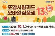 코리아타임뉴스 박찬식 기자 | 포항시는 추석 명절 지역경제 활력 제고를 위해 내달 1일부터 카드형·모바일 포항사랑상품권(이하 포항사랑카드)을 260억 원 규모로 13% 할인 판매한다. 시는 지난 9일 발행한 600억 원 규모 상품권이 완판됨에 따라, 내달에도 13% 할인 판매를 통해 시민과 소상공인들에게 직접적인 혜택을 제공하고, 지역 골목상권 소비 촉진의 마중물 효과를 이어가겠다는 방침이다. 올해 포항시는 당초 목표보다 500억 원 확대한 총 3,000억 원 규모의 상품권을 발행한다. 연말까지 매월 초 상품권을 발행하며 13% 할인율을 유지해 지역 자금 역외 유출을 막고 소상공인 매출 증대, 지역경제 선순환 구조 강화에 기여할 계획이다. 개인별 구매 한도는 월 50만 원, 보유 한도는 100만 원으로 조정된다. 개인을 대상으로만 할인하고, 지류형은 판매하지 않는다. 상품권은 10월 1일 0시 15분부터 모바일 앱 ‘iM샵’에서 충전할 수 있으며, 104개 판매대행 금융기관 영업점에서도 영업시간 내 충전이 가능하다. 포항사랑카드는 실물카드 결제 외에도 ▲삼성페이 ▲네이버페