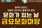 코리아타임뉴스 박찬식 기자 | 충북 단양군은 오는 9월 26일부터 12월까지 매월 마지막 금요일 저녁, 올누림센터 4층 강당에서 ‘2025 문화가 있는 주간 금요문화마당’을 운영한다고 밝혔다. 이번 프로그램은 문화기반시설을 활용한 정기 공연 활성화를 위해 마련된 것으로, 주민과 관광객이 함께 즐길 수 있는 소규모 공연을 통해 지역 문화 향유 기회를 넓히고자 기획됐다. 공연은 매월 다른 장르로 꾸며진다. 9월 26일 톱연주 공연을 시작으로 10월 31일 하모니카 연주, 11월 28일 클래식 공연, 12월 26일 영화 상영이 이어진다. 회차마다 약 100여 명 내외가 관람할 수 있으며, 관람은 선착순으로 입장 가능하다. 군 관계자는 “문화가 있는 주간 금요문화마당은 일상 속에서 문화를 접할 수 있는 소중한 기회가 될 것”이라며 “앞으로도 다양한 문화 프로그램을 통해 군민과 관광객이 함께 즐길 수 있는 문화공간을 확대해 나가겠다”고 말했다.
