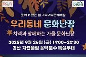 코리아타임뉴스 박찬식 기자 | 충북 괴산군은 ‘문화가 있는 날’ 주간을 맞아 오는 26일 오후 2시, 자연울림 음악분수 앞 특설무대에서 ‘문화가 있는 날 구석구석 문화배달 '우리동네 문화난장'’ 제7회차 행사를 개최한다고 밝혔다. 이번 행사는 괴산시장상인회가 주관하는 ‘2025 괴산사랑 치맥페스티벌’과 연계해 ‘치맥과 함께하는 가을 문화난장’이라는 주제로 진행된다. 무대에는 지역 예술인을 비롯해 다양한 분야의 공연진이 함께한다. 퓨전국악 그룹 ‘그라나다’의 무대와 함께, 가수 노수영, 마술사 신태호, 청주소리빛예술단, 그리고 제3회 괴산유기농가요제 대상 수상자 김희성의 공연 등 다채로운 볼거리가 마련돼 있다. 오후 8시부터는 ‘자연울림 음악분수’ 공연이 대미를 장식할 예정이다. 김춘수 괴산문화원장은 “9월 문화난장은 치맥페스티벌과 함께 열리는 만큼 더 많은 군민들이 편안한 분위기에서 문화예술을 즐길 수 있을 것”이라며 “음악분수 공연까지 어우러져 더욱 풍성한 가을의 하루가 될 것으로 기대된다”고 밝혔다. 한편, ‘우리동네 문화난장’은 괴산군민을 위한 생활 밀착형 문화 배달 프로그램으로, 매월 마지막