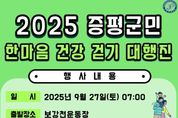 코리아타임뉴스 박찬식 기자 | ‘2025 증평군민 한마음 건강걷기대행진’이 오는 27일 오전 7시, 증평 보강천 운동장에서 열린다. 증평군체육회(회장 최재옥)가 주관하는 이번 행사는 군민의 건강 증진과 화합 도모, 가족 중심의 여가 문화 확산을 위해 마련됐다. 걷기 코스는 보강천 운동장을 출발해 천변공원, 김득신 다리, 무궁화길을 거치는 약 3.5km 구간이다. 경사가 완만하고 자연경관이 뛰어나 남녀노소 누구나 부담 없이 참여할 수 있는 코스로 구성됐다. 사전 신청 없이 군민 누구나 자유롭게 참여할 수 있으며, 참가자 전원에게 기념품이 제공되고 다양한 경품 추첨도 함께 마련된다. 체육회는 이번 걷기 대행진을 통해 군민이 함께 어우러지는 건강한 공동체 분위기를 조성하고, 삶의 질 향상에도 기여할 것으로 기대하고 있다. 최재옥 회장은 “보강천변의 아름다운 경관을 따라 가족, 친구들과 함께 걸으며 건강도 챙기고 즐거운 추억도 만드는 시간이 되길 바란다”며 “많은 군민들의 참여를 부탁드린다”고 말했다.