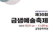 코리아타임뉴스 부산취재본부 | 부산시 금정구가 주최하고 금정구 문화예술인협의회(회장 도태근)가 주관하는 10월 31일부터 11월 9일까지 금정문화회관 은빛샘홀, 금샘미술관 전시실, 야외광장에서 ‘제30회 금샘예술축제’를 개최한다. 금샘예술축제는 국악·무용·문인·미술·사진·서예·연극·연예인·음악 등 9개 협회로 이루어진 금정구 문화예술인협의회에서 주관하는 지역대표 문화예술축제로, 30년째 매년 가을, 금정구 예술인들의 수준 높은 공연과 전시로 금정구 문화예술의 품격을 높여온 순수 종합예술축제다. 10월 31일 금정문화회관 은빛샘홀에서 개막 공연인 연극협회의 ‘늙은 자전거’를 시작으로, 11월 1일 음악협회의 ‘금샘열린음악회’, 11월2일 연예인협회의 ‘금정구민 현장노래방’이 진행된다. 아울러, 10월 31일부터 11월 9일까지 금샘미술관 전시실과 야외광장에서 서예협회의 ‘금정구서예인협회전’, 사진협회의 ‘금샘사진전’, 문인협회의‘깃발시화전 '파란 하늘 아래 시어가 펄럭이다'’이 진행된다. 올해 예술제에 참여하지 않은 국악협회, 무용협회와 미술협회는 내년에 더욱 풍성하게 준비하여 참여할 예정이다. &n