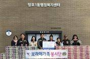 코리아타임뉴스 사회팀 | 수원시 영통구 망포1동은 지난 20일, 보라매가족봉사단에서 관내 저소득층에게 지원해달라며 컵라면(6개입) 200박스를 후원했다고 밝혔다. 공군전우회 봉사 모임인 보라매가족봉사단은 망포1동의 어려운 이웃을 위해 꾸준히 후원을 해오고 있으며, 특히 이번 후원은 매월 나눔활동을 하고 있는 보라매가족봉사단의 100회째 나눔활동이며, 봉사단체가 결성된지 100개월이 되어 더욱 뜻깊은 후원이 됐다. 전달식에 참석한 오남칠 단장은 “100번째 후원이라 어려운 이웃들에게 더 많은 응원을 드리고 싶었다. 컵라면의 따뜻한 온기처럼 조금이라도 힘이 되기를 희망하며, 앞으로도 취약 계층에게 실질적인 위로와 도움이 되도록 꾸준히 나눔을 이어가겠다”며 후원의 뜻을 밝혔다. 이에 김영희 망포1동장은 “100이라는 숫자가 갖는 온전한 충만함처럼 오랜 시간 진정성 있는 나눔을 실천해주신 보라매가족봉사단 단장님과 회원님께 진심으로 감사 드린다. 100번째의 사랑이 어려운 이웃들에게 잘 전달될 수 있도록 하겠다”며 감사 인사를 전했다.