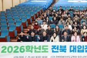 코리아타임뉴스 사회팀 | 전북특별자치도교육청은 25일 창조나래 시청각실에서 2026년 전북 대입진학지도지원단 발대식을 개최하고, 단위학교가 변화하는 대입환경에 효과적으로 대응할 수 있도록 본격적인 지원 활동에 돌입했다. 2026년 전북 대입진학지도지원단은 조창녕 교사(고창북고)를 단장으로 98명의 진학전문교사와 자문위원(3명), 권역별 진학부장 협의체(대외협력팀, 20명), 업무팀(4명)을 포함해 총 125명으로 구성됐다. 특히 고교학점제 전면 시행과 2028학년도 대입제도 개편에 대비해 전형 분석 기능과 단위학교 지원을 대폭 강화하는 방향으로 조직을 개편하고, 특별전형 분석팀을 신설했다. 특별전형 분석팀은 지역인재 전형, 사회통합전형, 고른기회전형 등 대학별로 세분화된 특별전형을 심층 분석하고, 현장 중심의 지원을 통해 도내 고교에 정확하고 신뢰도 높은 정보를 제공할 계획이다. 대입진학지도지원단은 특별전형 분석팀을 비롯해 △연수 및 현장지원팀 △자료개발팀 △학생부종합전형 연구팀 △수능전형 연구팀 △대입 진로진학상담팀 △대외협력팀으로 운영되며, 2027학년도 대입 진학지도 정보 및 전략 허브 역할을
