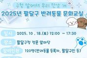 코리아타임뉴스 사회팀 | 수원시 팔달구는 10월 18일 오후 12시부터 17시 30분까지 팔달구청 정문 앞마당에서 ‘2025년 팔달구 반려동물 문화교실’을 개최한다고 밝혔다. 반려동물 문화교실은 성숙한 반려문화 확산과 올바른 반려동물 관리, 양육 방법을 알리기 위해 마련됐으며 반려동물 등록자 및 팔달구민 120명을 대상으로 추진한다. 교육 프로그램은 △인식표 만들기 △산책 그룹 훈련 △반려견 셀프 미용으로 총 3개 프로그램을 추진한다. 12시부터 진행하는 ‘인식표 만들기’는 반려견 유실 방지를 위해 동물등록번호와 견주 연락처를 새긴 맞춤형 인식표를 직접 제작할 수 있고, 14시부터는 ‘산책 그룹 훈련’에서는 산책줄 핸들링과 돌발 상황 시 대처법 등 및 올바른 산책 방법에 대해 배워볼 수 있다. 15시 30분에는 초보자도 쉽게 실천할 수 있는 ‘반려견 셀프 미용 수업’이 준비되어 있다. 팔달구 관계자는 “2025년 반려동물 문화교실 개최를 통해 구민들이 반려동물을 책임감 있게 관리하고, 올바른 반려 문화가 조성되길 바란다“라고 말했다. 한편, 팔달구는 구 홈페이지, 안내문자 및 QR코드를