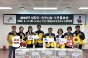 코리아타임뉴스 세종취재분부 | 세종특별자치시 대평동지역사회보장협의체(공동위원장 강옥주·이재익)가 10일 설 명절을 맞아 관내 어려운 이웃 10가구에 ‘착한나눔 꾸러미’를 전달했다. 이번 기부는 지난해에 이어 관내 착한가게로 꾸준히 나눔을 실천하고 있는 프리미엄 정육점(대표 현상현)과 세종마트(대표 문승준)의 후원이 더해져 마련됐다. 대평동지사협은 10만 원 상당 식료품으로 구성된 착한나눔 꾸러미를 취약계층 가정에 직접 방문해 전달하고, 안부를 살피며 따뜻한 명절 인사를 나눴다. 강옥주 동장은 “소외된 이웃을 위해 따뜻한 지원에 앞장서 주시는 협의체 위원들의 정성에 감사드린다”며 “명절 기간 어려운 주민들이 소외감을 느끼지 않도록 더욱 세심하게 살피겠다”고 밝혔다.