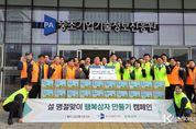 코리아타임뉴스 세종취재분부 | 세종특별자치시 소담동지역사회보장협의체(공동위원장 허문선·배병국)가 5일 설 명절을 앞두고 한국전력공사 세종전력지사(지사장 김진우)로부터 위문품을 기탁 받았다. 이날 위문품은 100만 원 상당의 생필품 꾸러미로, 관내 저소득 취약계층에 전달될 예정이다. 특히 한국전력공사 세종전력지사는 소담동 행정복지센터 직원들과 함께 직접 대상 가구를 방문하여 물품을 전달하고 안부를 살피는 등 현장의 목소리에 귀를 기울였다. 김진우 한국전력공사 세종전력지사장은 “명절을 맞아 어려운 이웃에게 실질적인 도움이 되길 바라는 마음으로 기부했다”며 “지속적인 나눔 활동으로 지역사회와 상생하며 사회적 책임을 다하는 기업이 되겠다”고 말했다. 허문선 동장은 “매년 잊지 않고 귀한 나눔을 실천하는 한국전력공사 세종전력지사에 깊은 감사를 드린다”며 “보내주신 따뜻한 마음이 소외된 이웃들에게 큰 희망과 위로가 될 것”이라고 밝혔다.