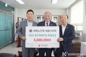 코리아타임뉴스 세종취재분부 | 종시 어르신들이 십시일반 성금을 모아 호우피해 이재민들을 위해 기부했다. 사)대한노인회 세종특별자치시회(회장 장영)는 21일 10시 세종시 조치원읍 노인회에서 장영 회장, 한인석 수석부회장, 김은희 사무처장, 박상혁 세종모금회장, 김은영 팀장 등이 참석한 가운데 ‘2025 호우피해지원 특별성금 500만원 전달식’을 가졌다. 대한노인회 세종지회는 매년 산불이나 수해피해, 연말 이웃돕기 성금 등 도움의 손길이 필요한 순간에 어르신들의 솔선수범으로 지속적으로 참여하고 있다. 이와 같은 나눔참여로 지금까지 총 13회에 걸쳐 6천여만원의 성금을 기탁하기도 했다. 장영 세종노인회 회장은 “호우피해로 많은 사상자와 피해가 발생하여 회원들과 회의를 하여 십시일반 성금을 모아 사랑의 손길을 전하자는 의견을 모으고 모금을 진행했다”며 “금액의 많고 적음을 떠나 모든 회원이 참여하는데 의미를 두고 모금을 전개했다”고 밝혔다. 박상혁 세종모금회 회장은 “해마다 도움의 손길이 필요한 순간이면 세종시 어르신들이 솔선수범하여 나눔을 실천하는 모습에 항상 존경심이 든다”며 “우리나라를
